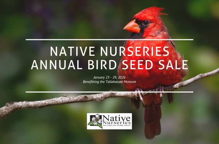 This year’s sale takes place from Jan. 23-29, 2026 at Native Nurseries. Not only is all bird seed on sale (15% off), but 10% of all seed sales go directly to the Tallahassee Museum for the entire week!